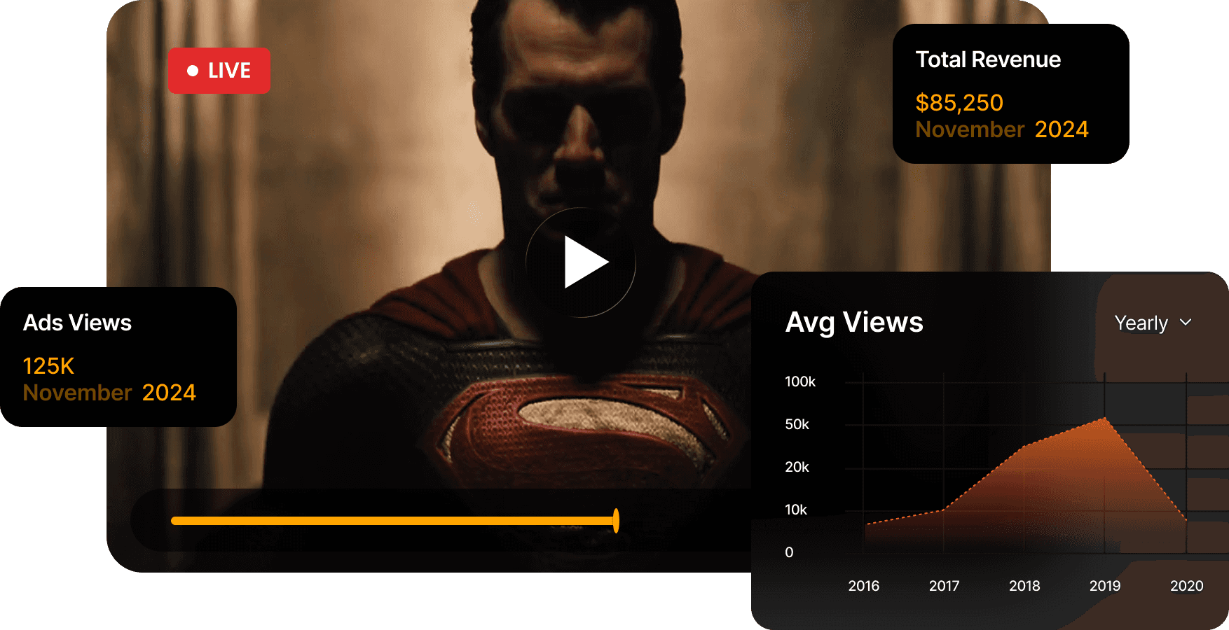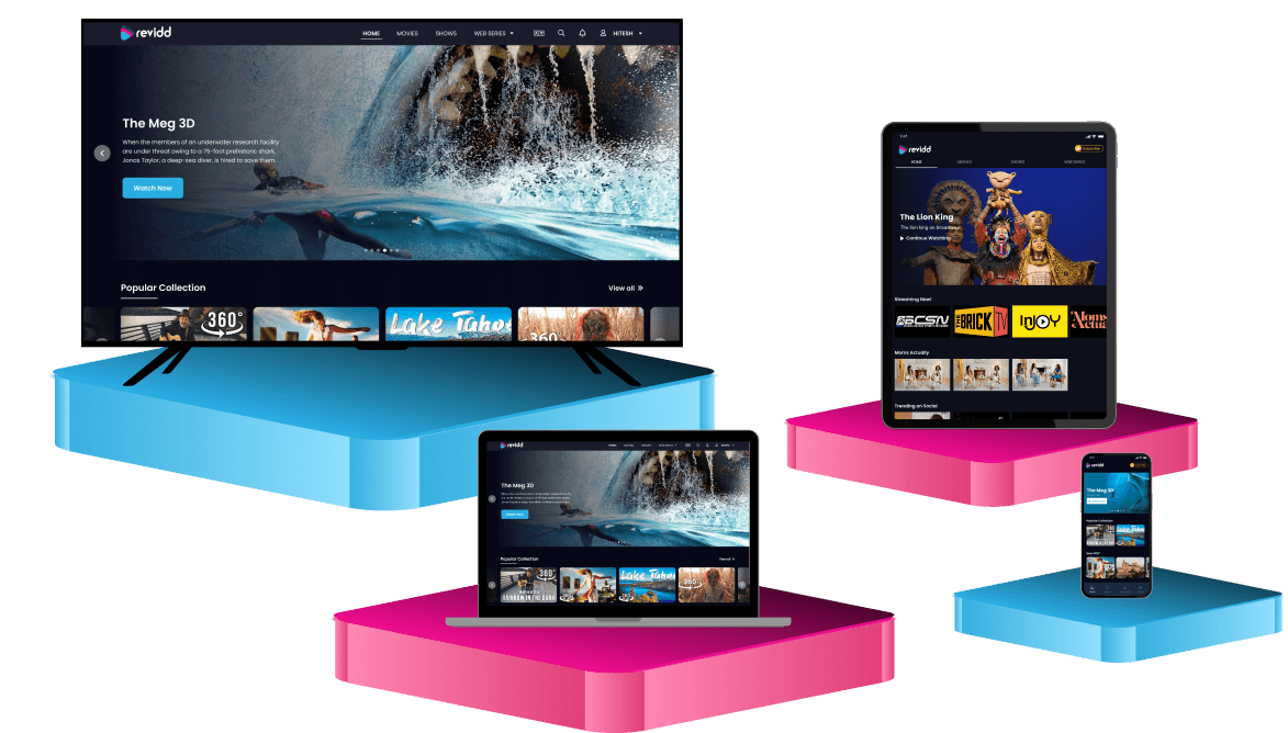 Revidd's AI-native infrastructure runs your entire OTT operation — content, users, entitlements, and monetization — across web, mobile, and CTV. No platform lock-in. No middlemen. No cuts to your revenue.