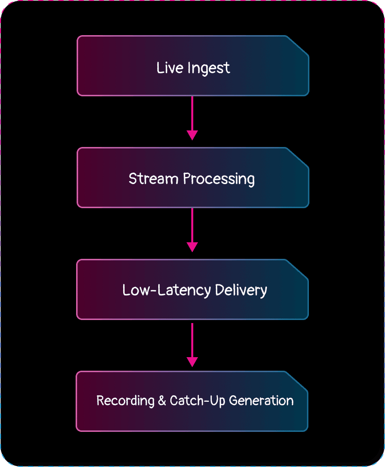Low-latency, high-concurrency live sports and event streaming — with intelligent monetization, automated workflows, and zero margin for error.